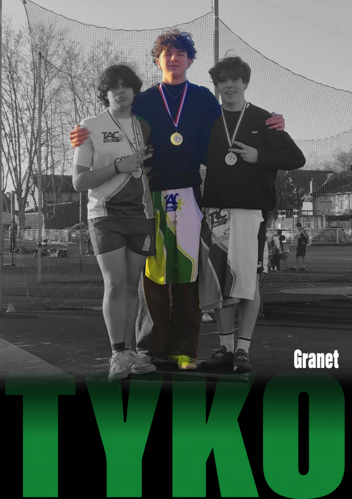 Athlète du Tulle Athlétic Club au sein de Corrèze Athlé, Tyko Granet évolue dans les épreuves de lancers, avec une spécialité pour le disque. Il s’est récemment illustré en remportant le titre de Champion Départemental Hivernal, avec 31 m 39.